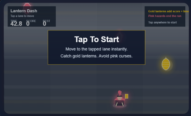 Dodge pink cursed hazards, catch gold lanterns, and build bonus chains for more score and extra time.